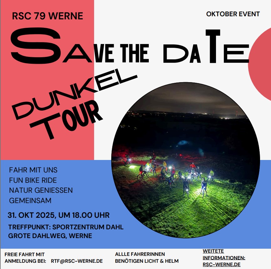 Am vergangenen Freitag waren über 90 Radfahrer bei unserer traditionellen Dunkeltour unterwegs! In sechs Gruppen ging es gemeinsam in die Dunkelheit.