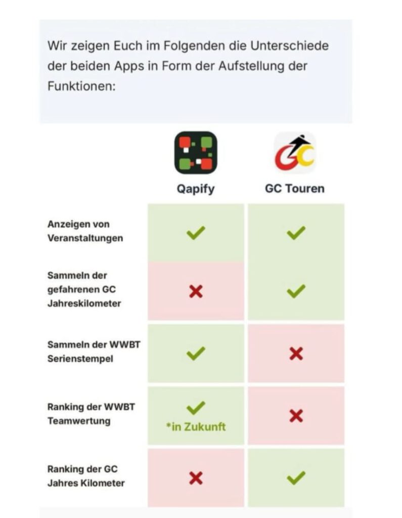 Die GC Touren-App bietet aktuell leider keine Serienfunktion wie wir sie für die Westfalen-Winter-Bike-Trophy benötigen. Unsere Lösung in der Vergangenheit hieß Stempelkarte. Auf vielfachen Wunsch von euch gehen wir mit Qapify jetzt den nächsten logischen Schritt um auch die Stempelkarte zu digitalisieren.